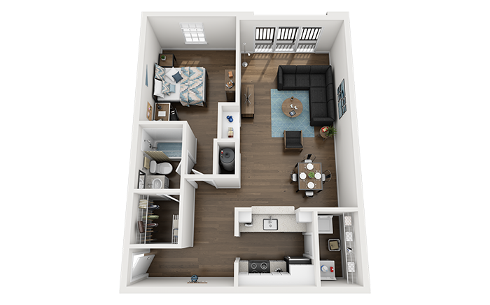1 Dormitorio, 1 Baño, 850 pies²Disponible AhoraGalería del Modelo