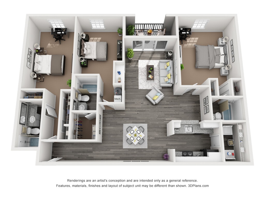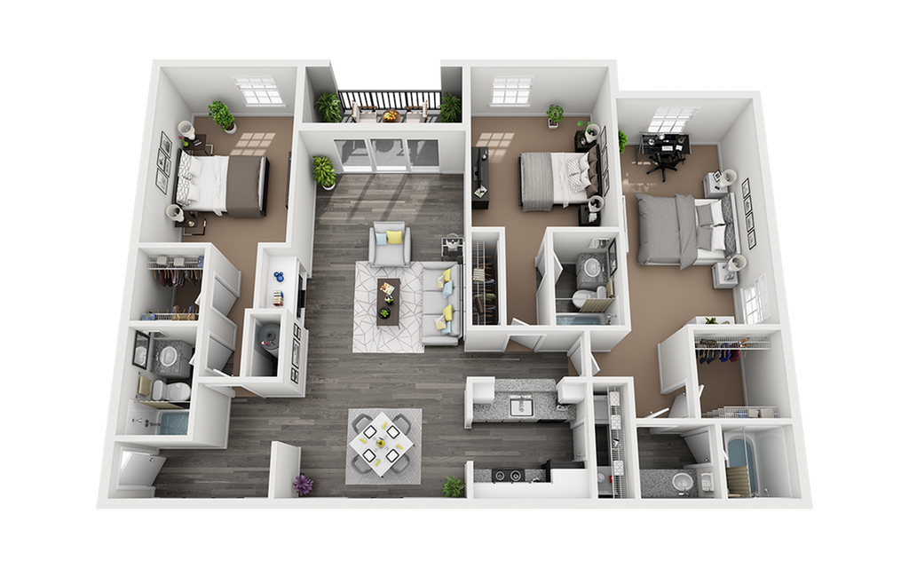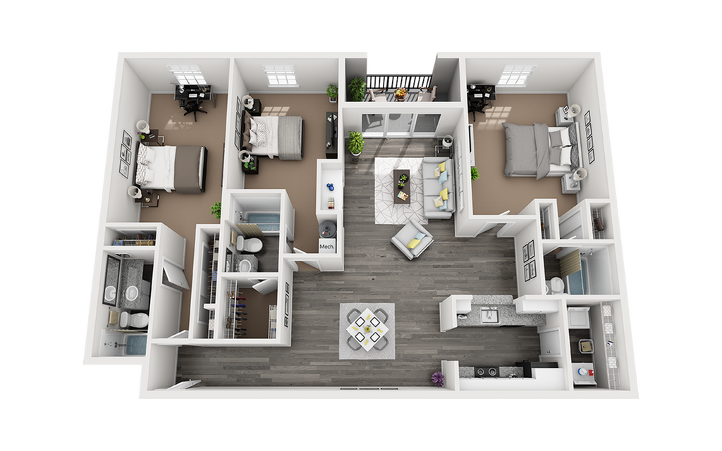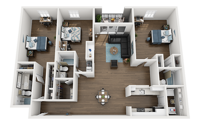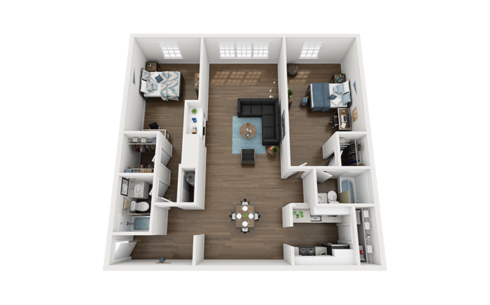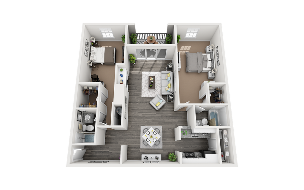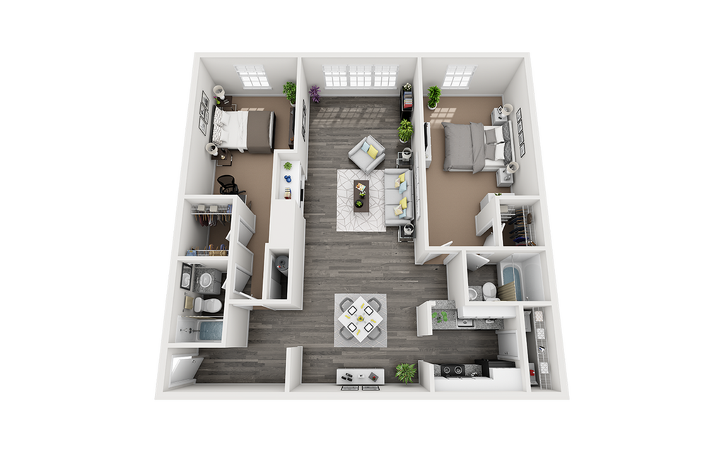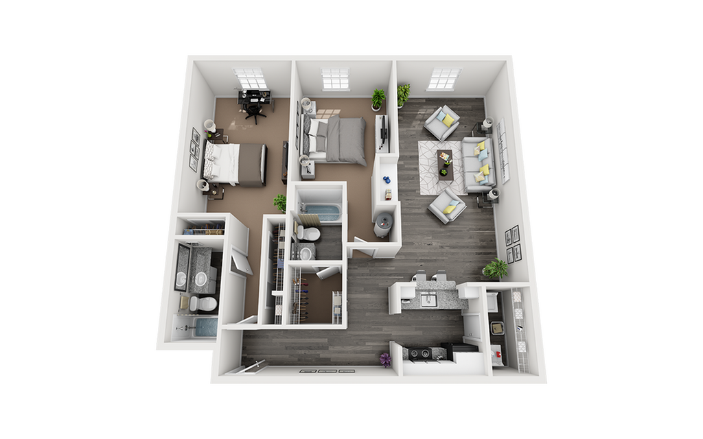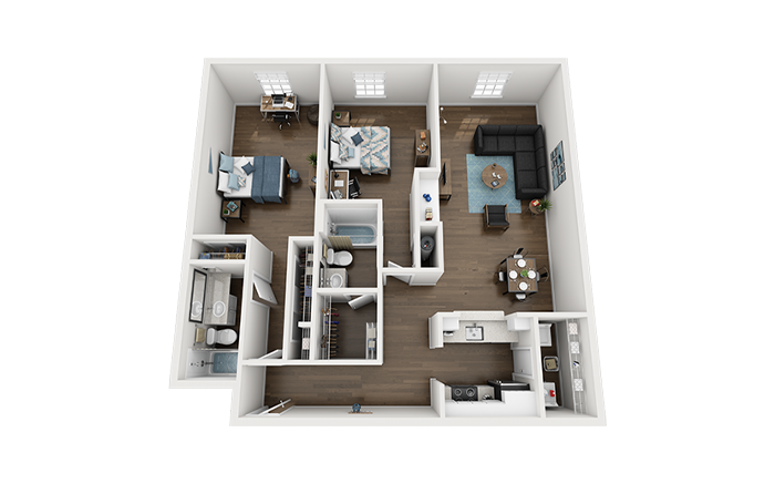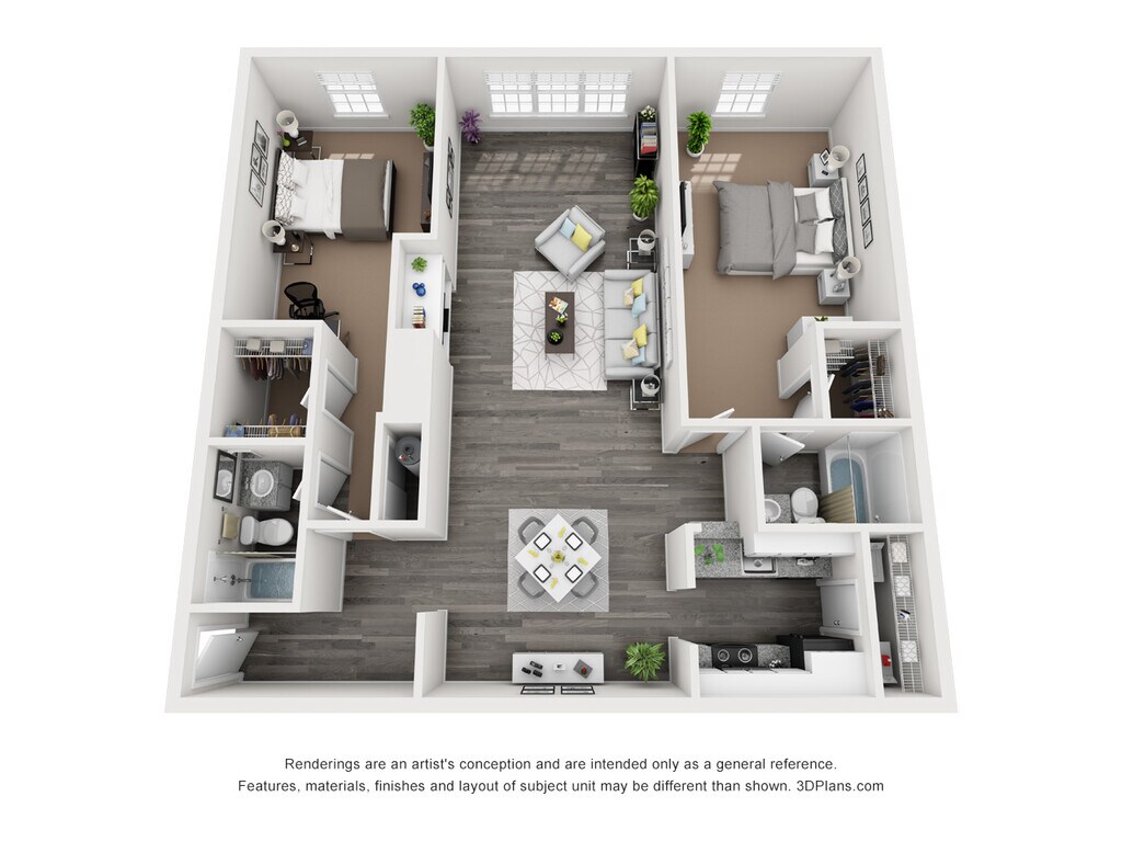 Modelo de apartamento: B3Desde $9702 Dormitorios, 2 Baños, 1300 sq ftDisponible Ahora![]()