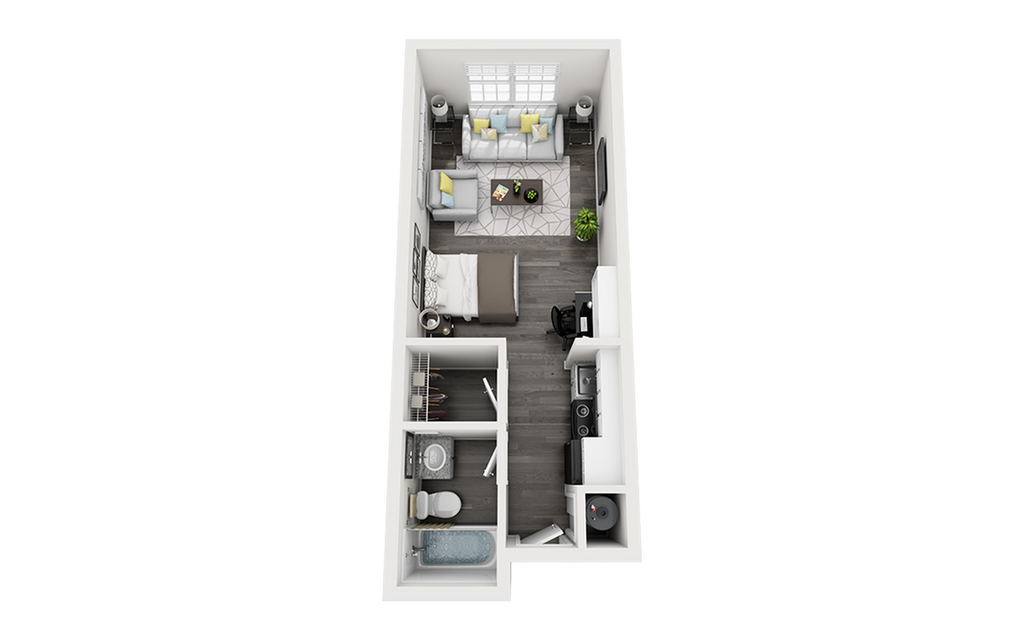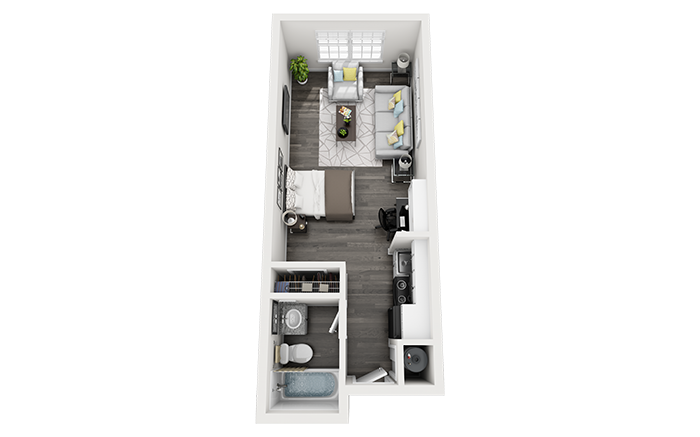 Estudio, 1 Baño, 400 pies²Disponible AhoraGalería del Modelo