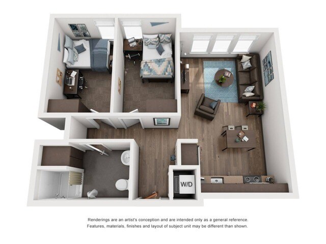 2 Dormitorios, 1 Baño, 671 pies²Disponible AhoraGalería del Modelo