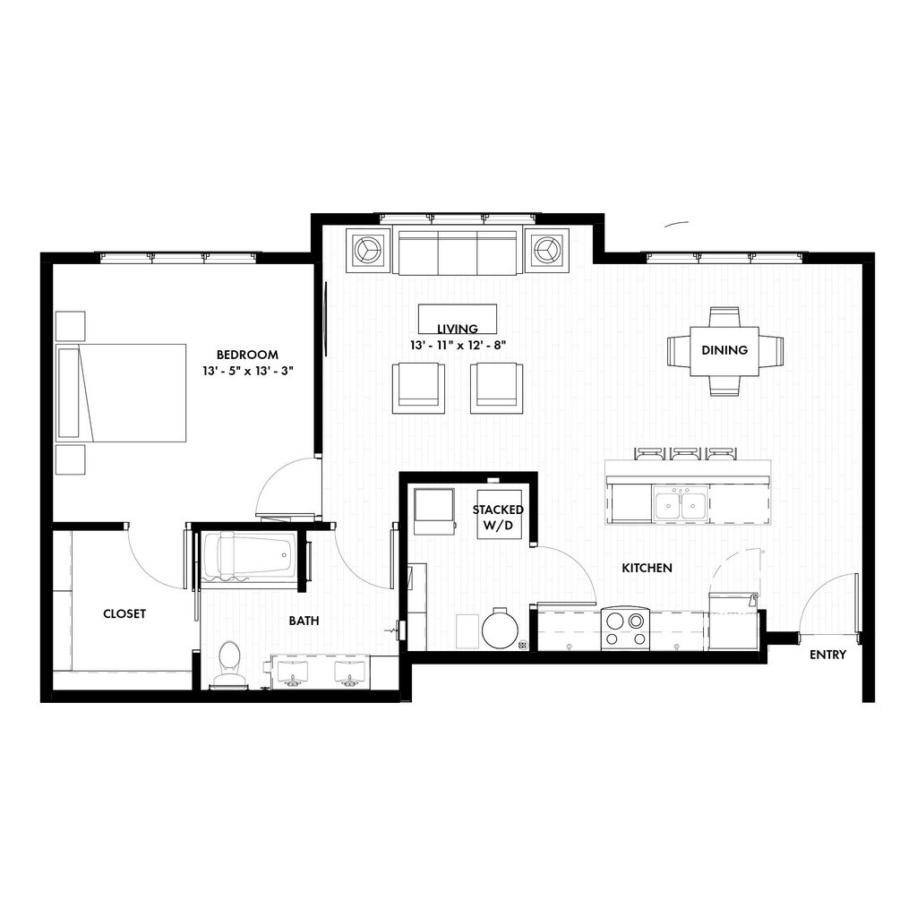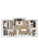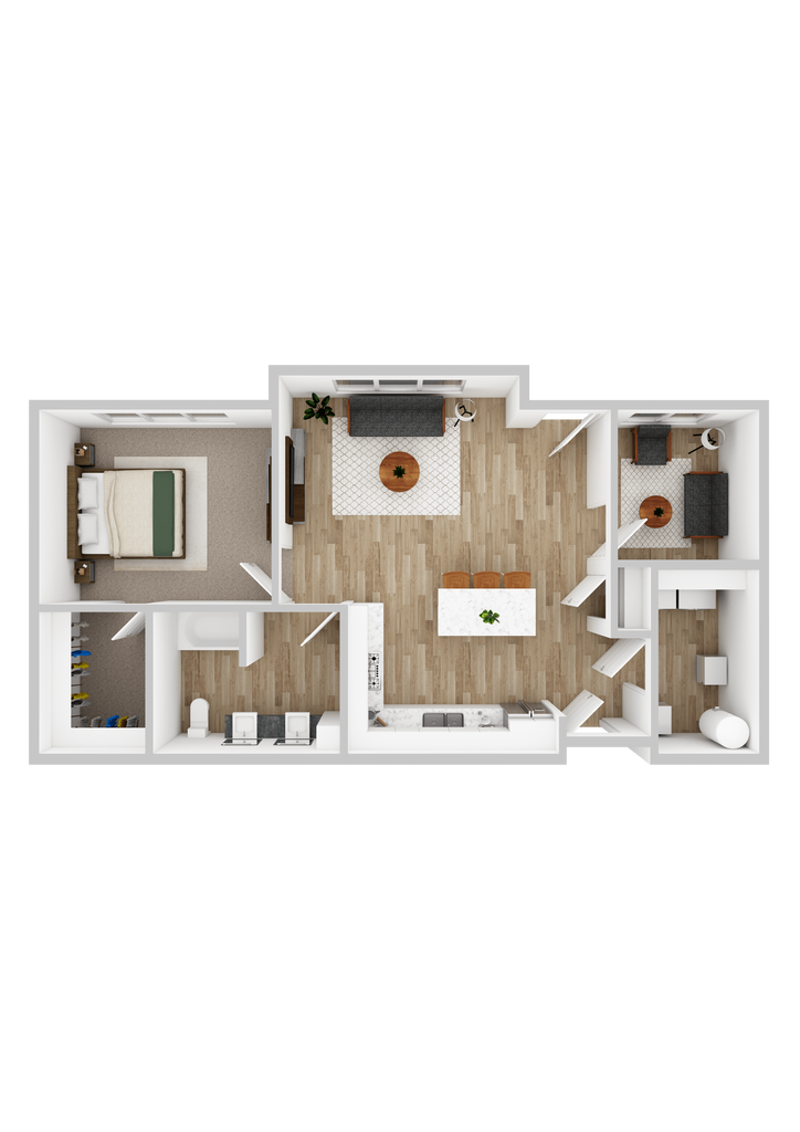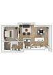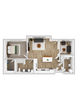 1 Dormitorio, 1 Baño, 845 pies²Disponible Aug 15Galería del Modelo