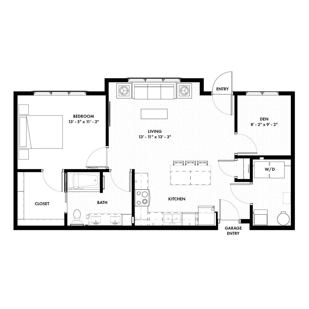 A2-A (1+ Den) - Plano 2 Unidad de apartamento: 7101Modelo de apartamento: A2-A (1+ Den)$2,1451 Dormitorio, 1 Baño, sq ftDisponible August 15, 20262 Dormitorios