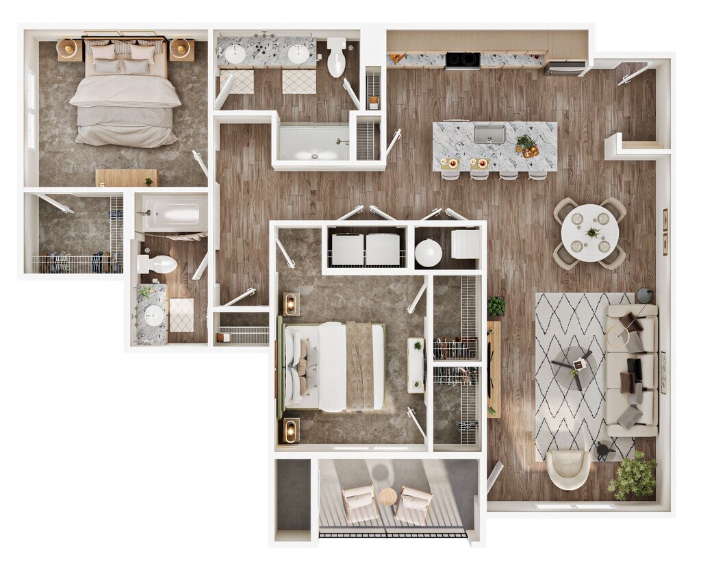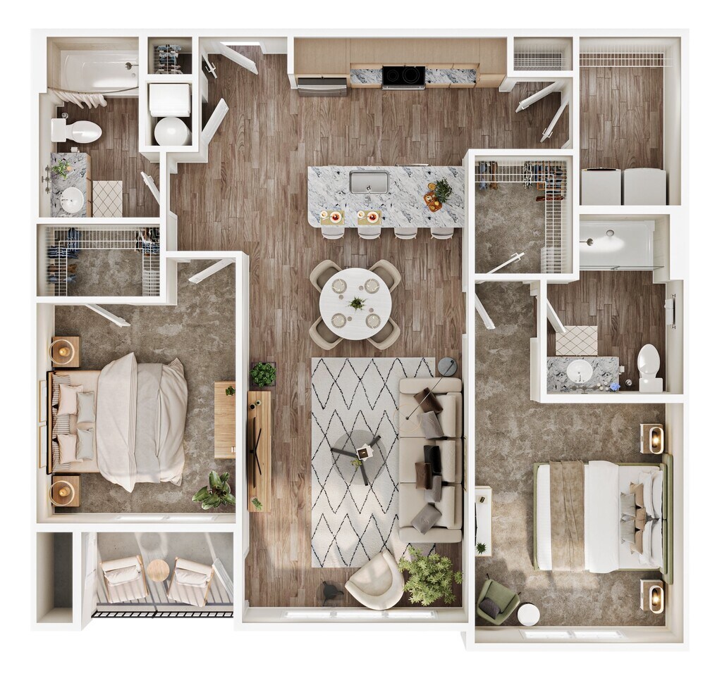 Modelo de apartamento: B5Llame para Precios2 Dormitorios, 2 Baños, from 1262 sq ftNo Disponible![]()