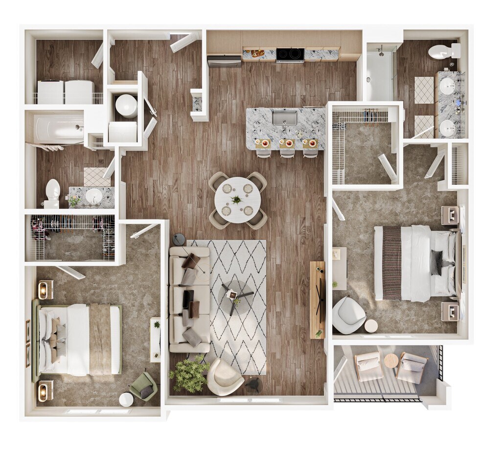 Modelo de apartamento: C1Llame para Precios3 Dormitorios, 2 Baños, from 1475 sq ftNo Disponible![]()