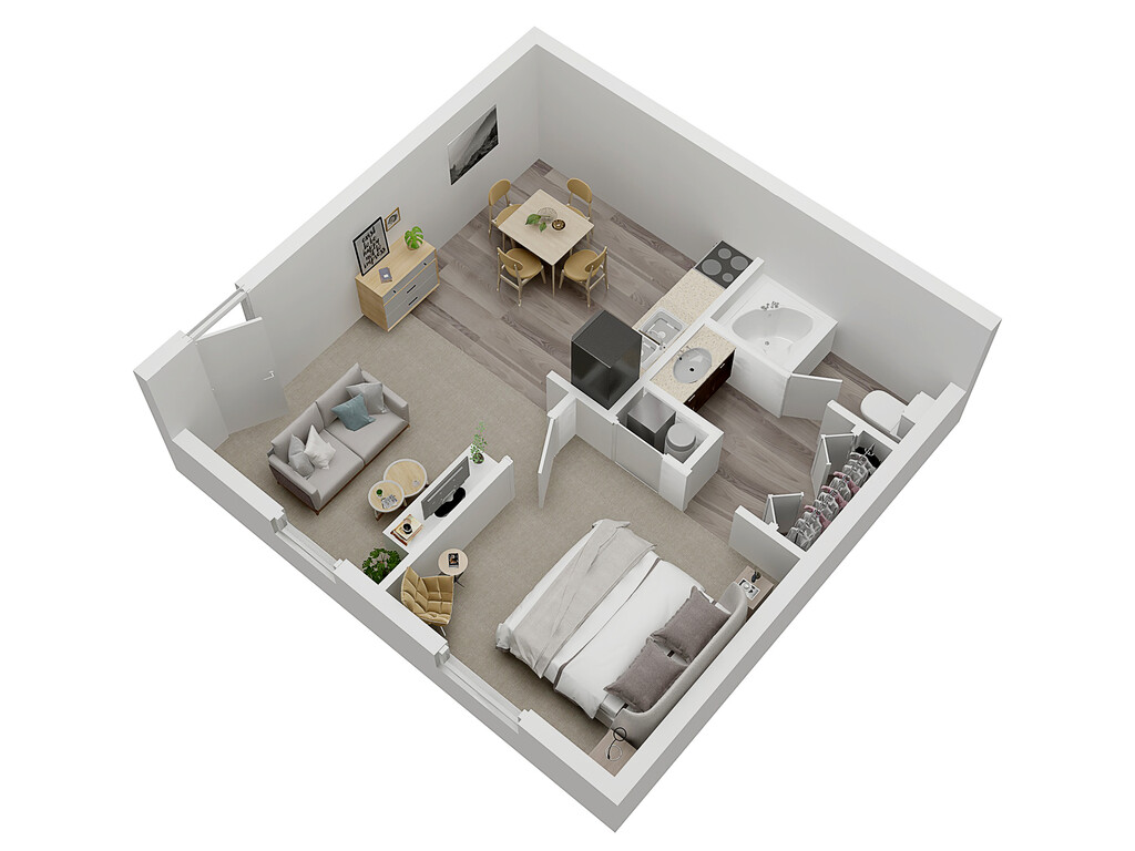 1 Dormitorio, 1 Baño, 500 pies²Galería del Modelo