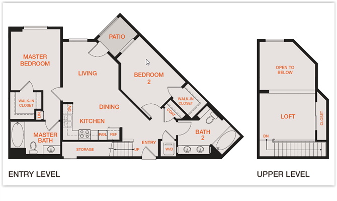 Modelo de apartamento: A2Desde $2,9021 Dormitorio, 1 Baño, 745-791 sq ftDisponible Ahora![]()