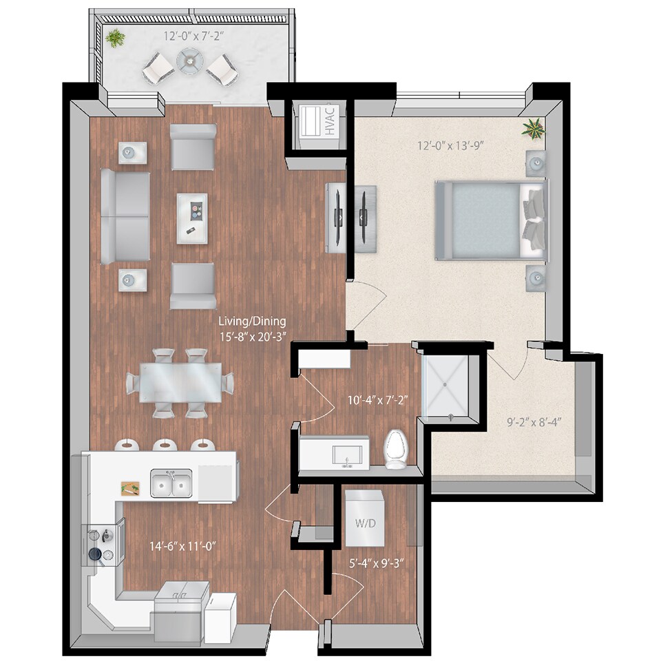 Abbott - Plano 1 Unidad de apartamento: 323Modelo de apartamento: Abbott$1,8591 Dormitorio, 1 Baño, 814 sq ftDisponible Ahora![]()