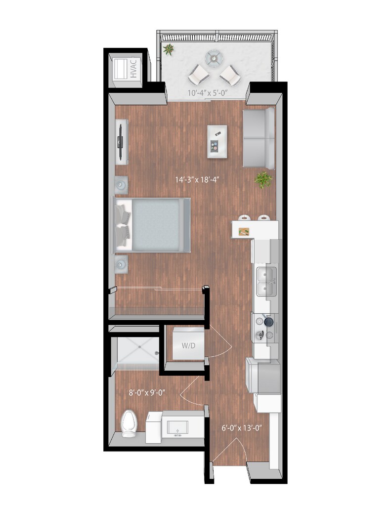 Estudio, 1 Baño, 693 pies²El más grandeEsta opción tiene las unidades más grandes para este modeloGalería del Modelo