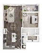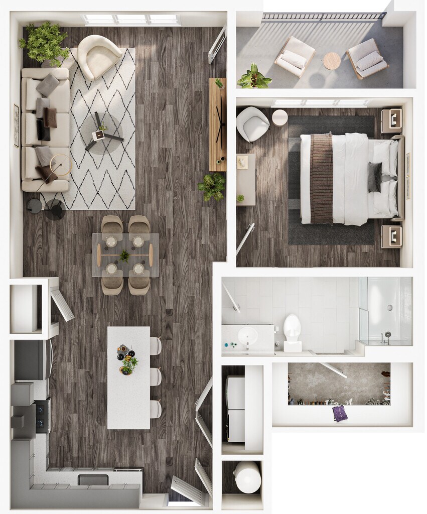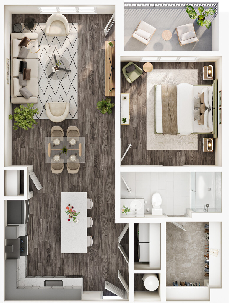 1 Dormitorio, 1 Baño, 847 pies²Disponible AhoraGalería del Modelo