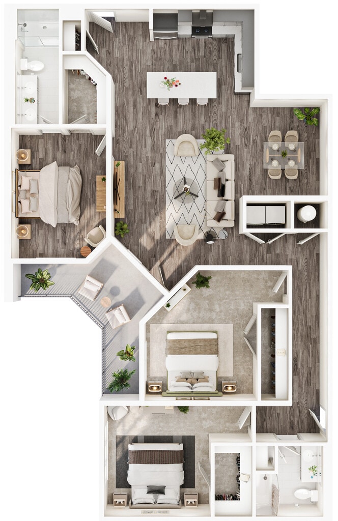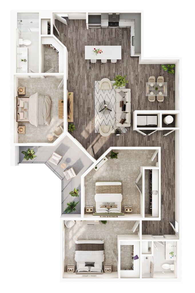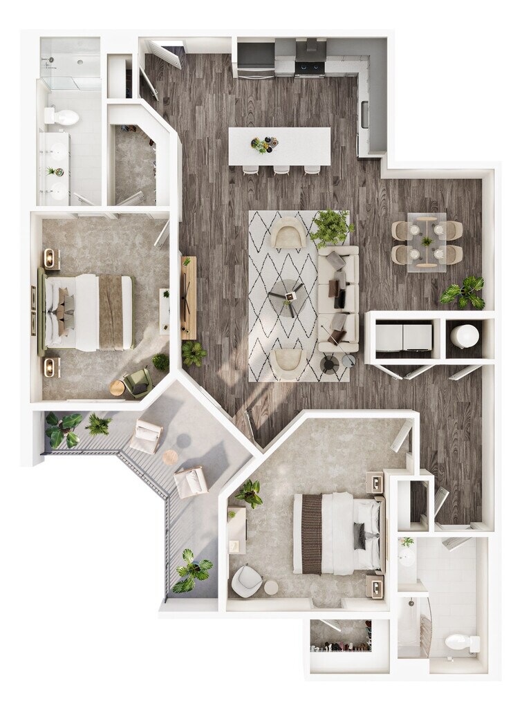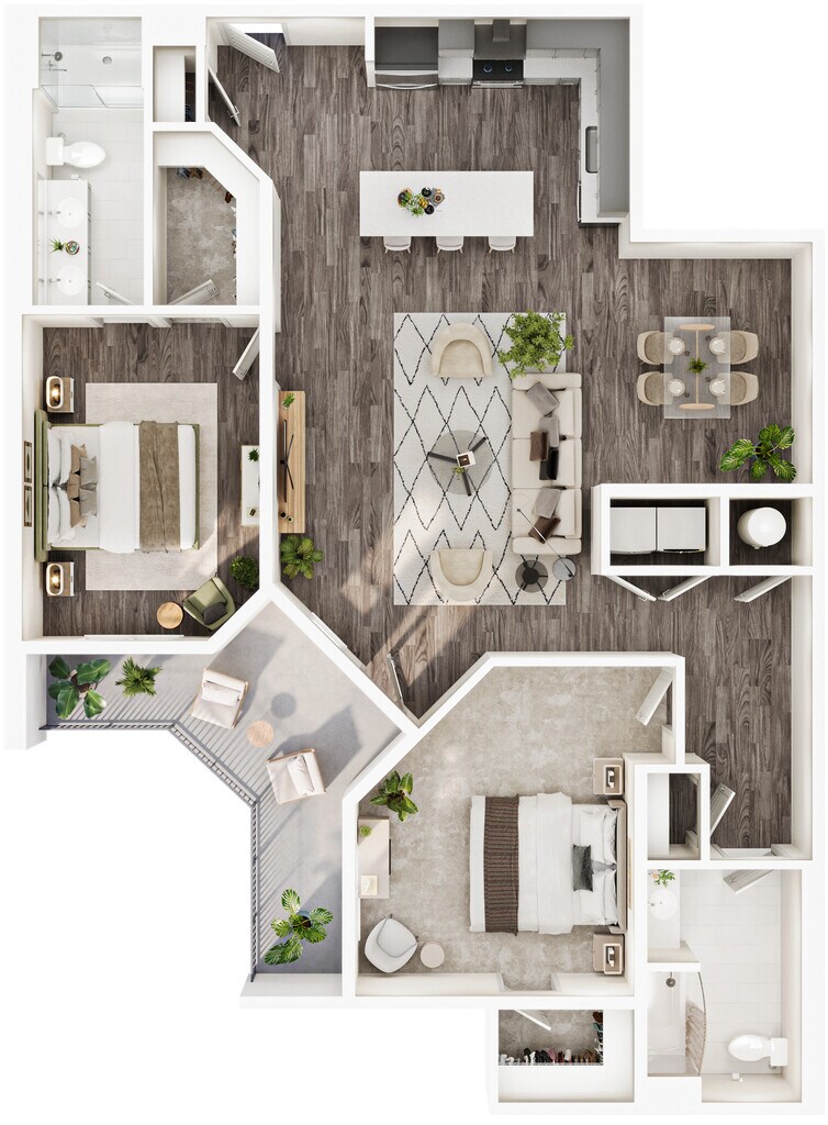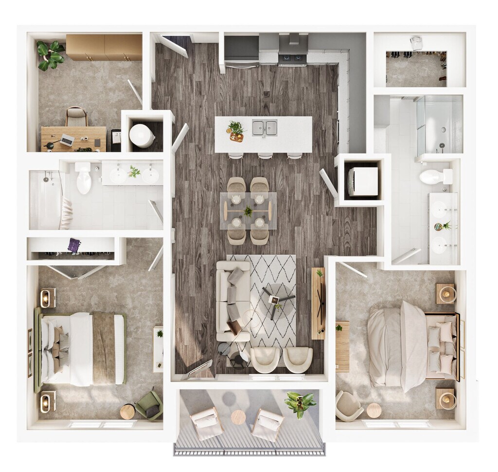 Modelo de apartamento: A2PDesde $1,5851 Dormitorio, 1 Baño, 900 sq ftDisponible Ahora![]()
