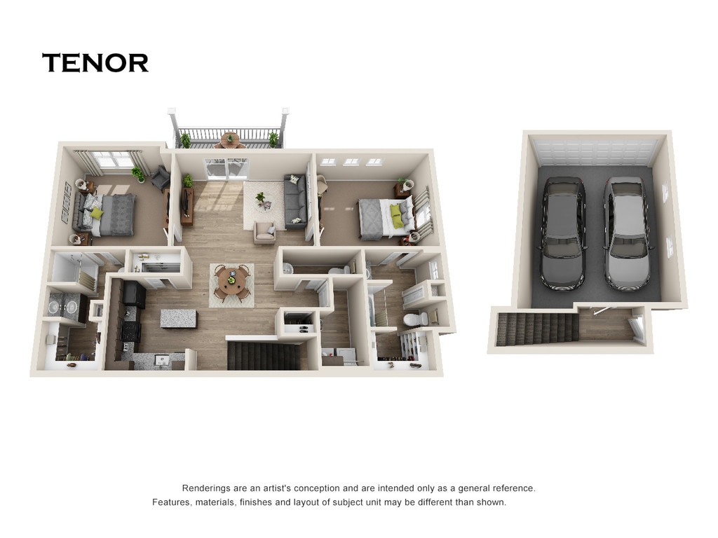 Modelo de apartamento: Tenor$1,4002 Dormitorios, 2.5 Baños, 1275 sq ftNo DisponibleTenor - Plano 1 3 Dormitorios