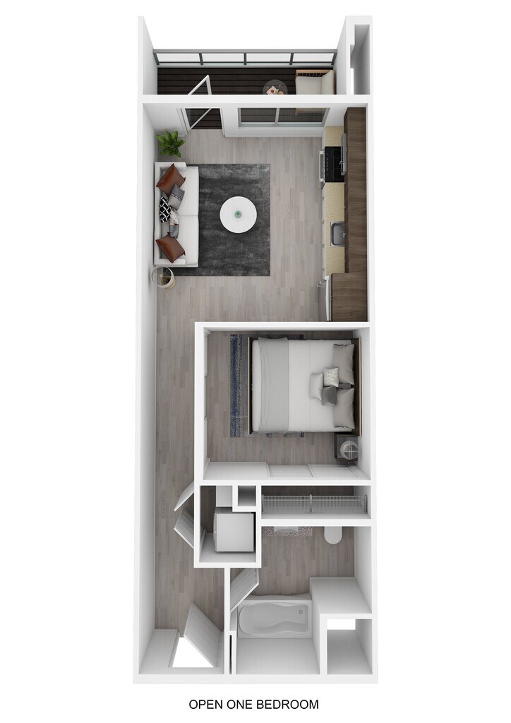 Modelo de apartamento: Open 1 Bedroom LoftLlame para Precios1 Dormitorio, 1 Baño, 703-985 sq ftNo Disponible![]()