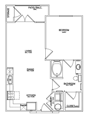1 Dormitorio, 1 Baño, 815 pies²El más grandeEsta opción tiene las unidades más grandes para este modeloGalería del Modelo