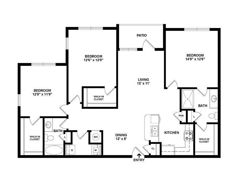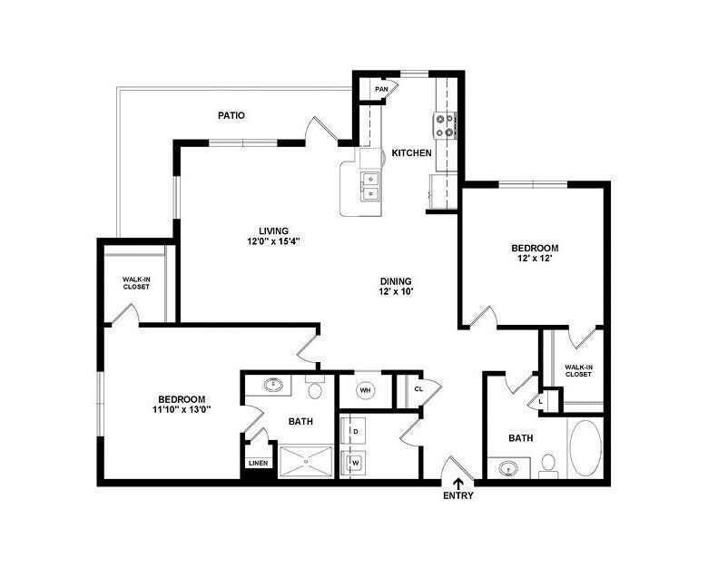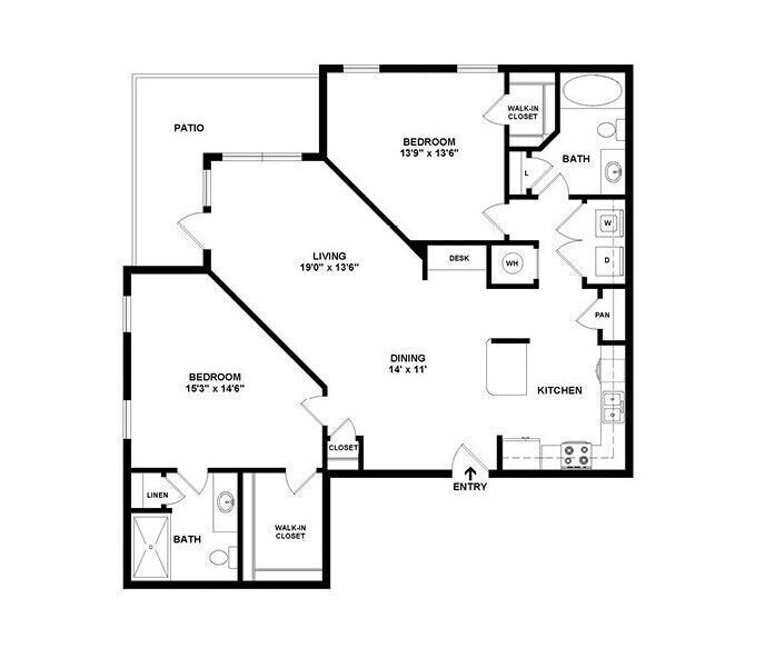 Modelo de apartamento: The McDermott2 Dormitorios, 2 Baños, 1218 sq ftNo Disponible![]()