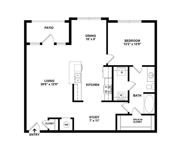 Modelo de apartamento: The Hedgecoxe1 Dormitorio, 1 Baño, 828 sq ftNo Disponible![]()