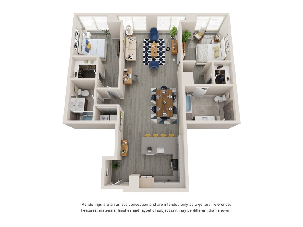 Modelo de apartamento: D$4,4922 Dormitorios, 2 Baños, 956 sq ftDisponible December 8, 2025Los planos de la planta son una interpretación artística. Todas las dimensiones son aproximadas. Los tamaños o el detalle del producto real y sus especificaciones pueden variar. No todas las características están disponibles en todos los hogares para rentar. Los precios y la disponibilidad están sujetos a cambios. El alquiler que se muestra es mensual. Se pueden aplicar ciertos cargos, por ejemplo, entrega de paquetes, recolección de basura, agua, servicios, etc. Depositos varian. Consulta a un representante para conocer detalles.