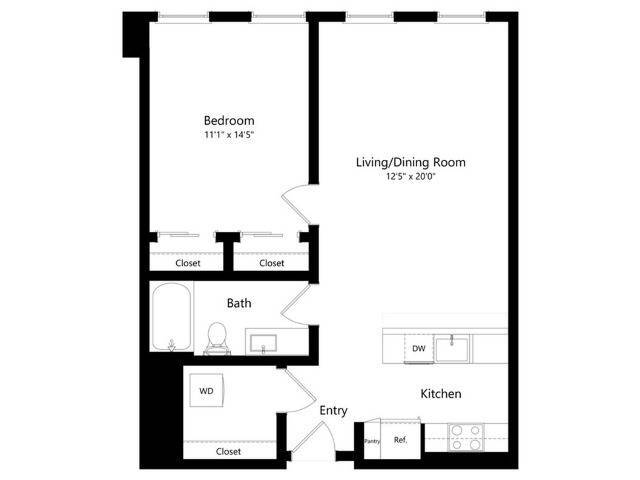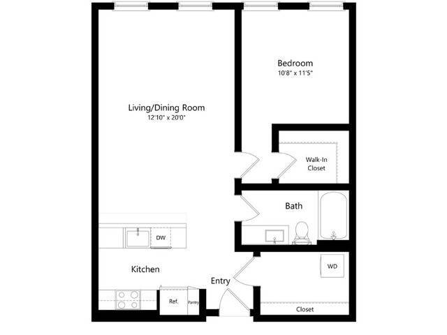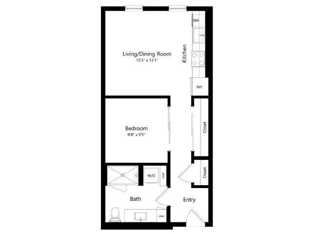 U1.3 - Plano 1 Unidad de apartamento: 224Modelo de apartamento: U1.3$2,1591 Dormitorio, 1 Baño, 574 sq ftDisponible AhoraPlano: U1