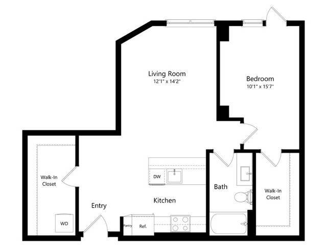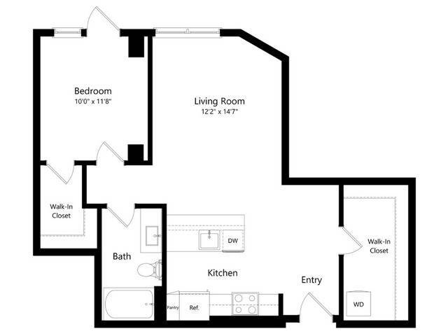 Modelo de apartamento: U1Desde $2,2141 Dormitorio, 1 Baño, 574 sq ftDisponible AhoraLos planos de la planta son una interpretación artística. Todas las dimensiones son aproximadas. Los tamaños o el detalle del producto real y sus especificaciones pueden variar. No todas las características están disponibles en todos los hogares para rentar. Los precios y la disponibilidad están sujetos a cambios. El alquiler que se muestra es mensual. Se pueden aplicar ciertos cargos, por ejemplo, entrega de paquetes, recolección de basura, agua, servicios, etc. Depositos varian. Consulta a un representante para conocer detalles.