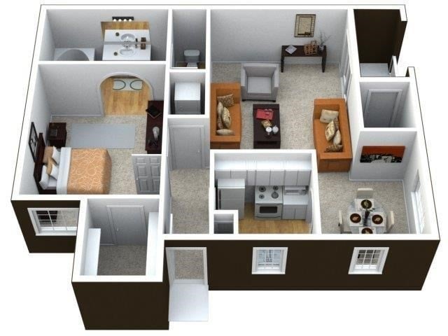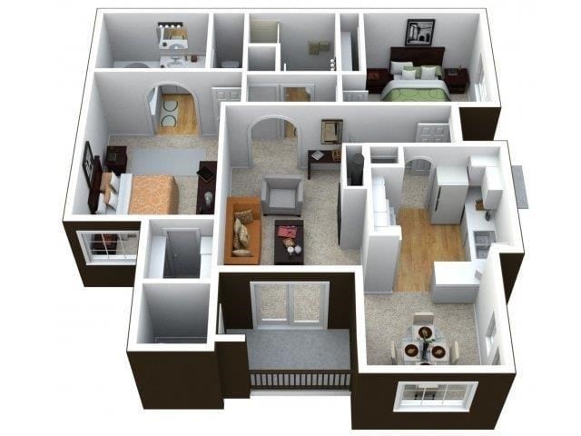 2 Dormitorios, 2 BañosPrecio Mensual TotalDisponible AhoraGalería del Modelo