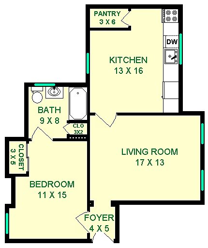 2 Dormitorios, 1 Baño, 960 pies²Detalles de Diponibilidad