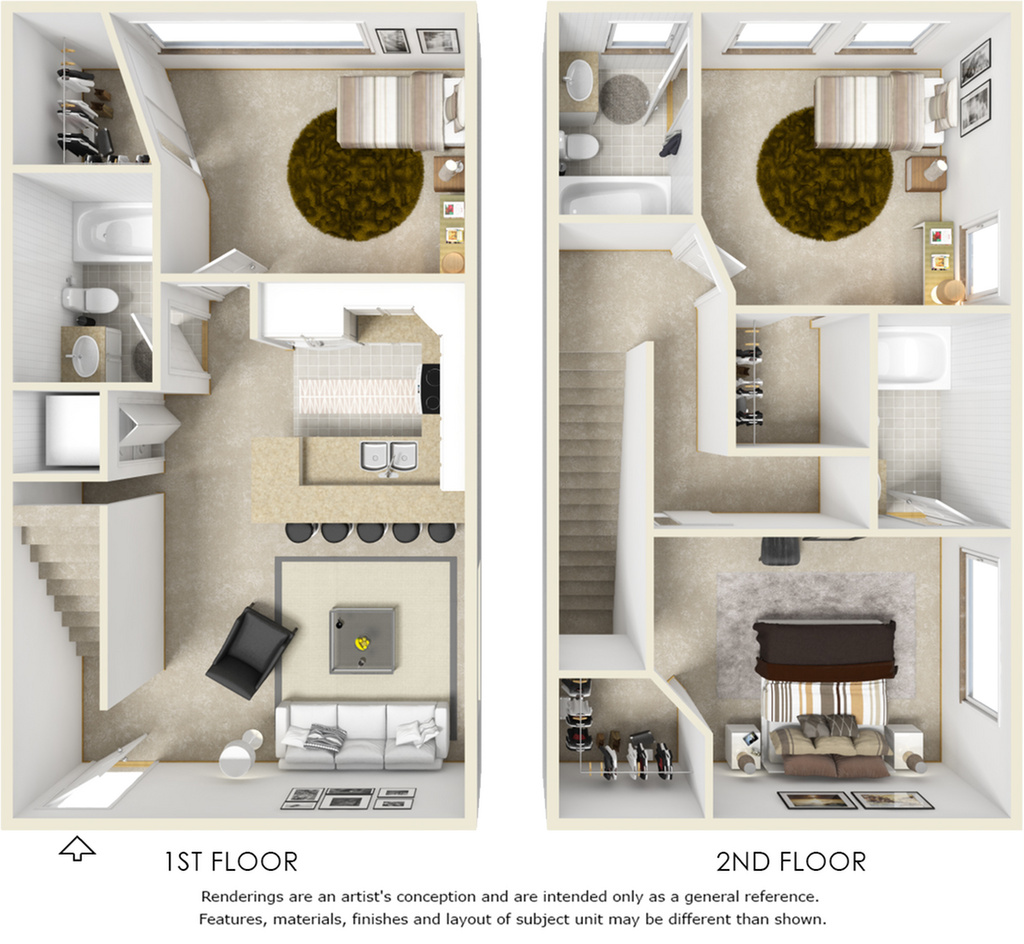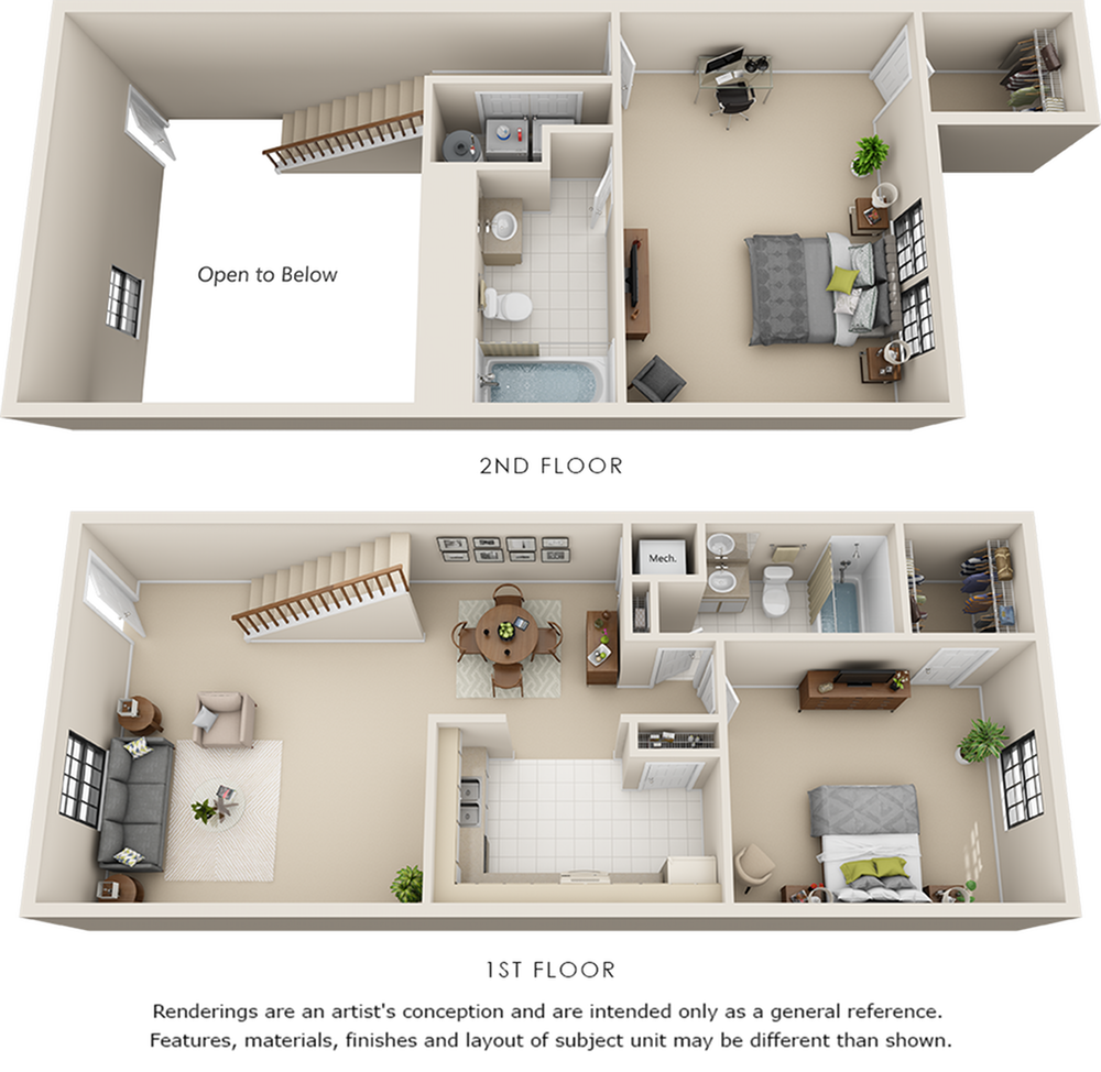 - Diseño de concepto abierto con grandes techos de 9 pies*