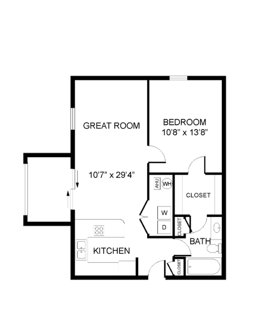 Modelo de apartamento: Standard One Bedroom1 Dormitorio, 1 Baño, 600 sq ftDisponible Ahora![]()