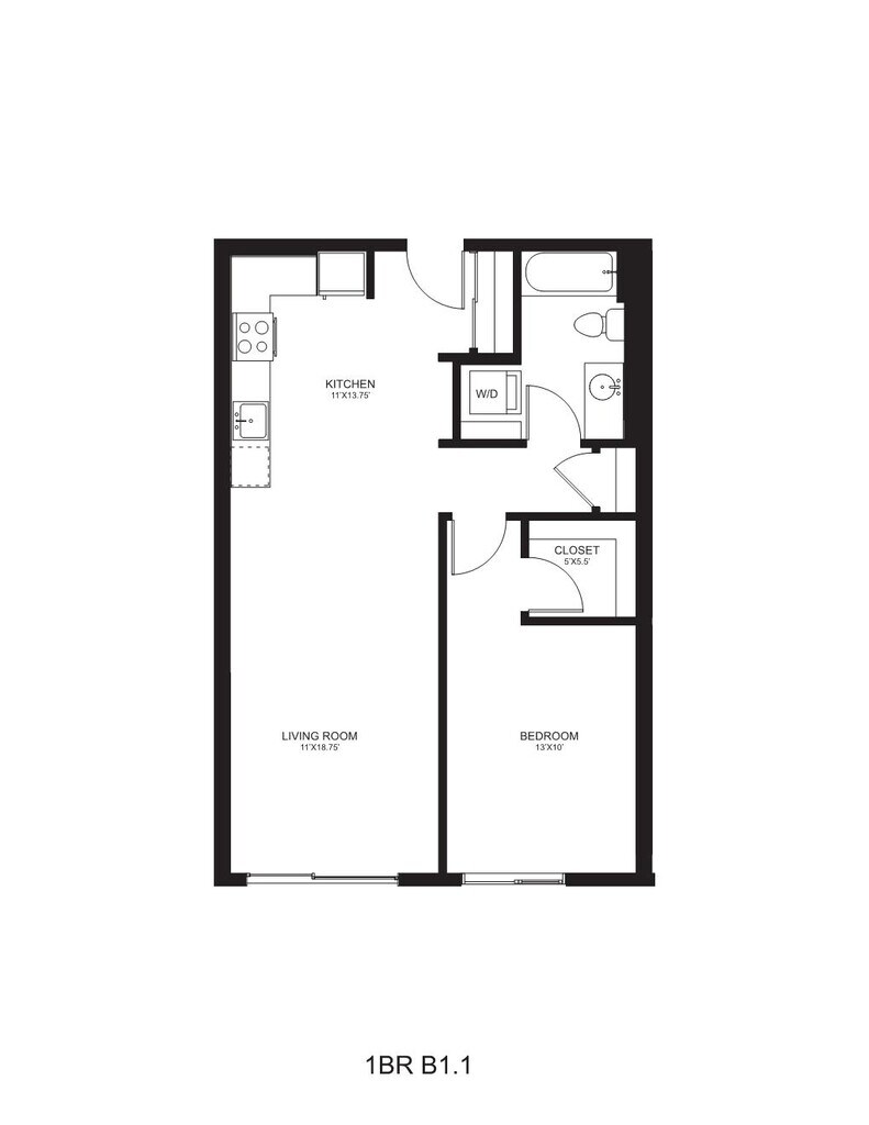 B5.1 - Plano 1 Unidad de apartamento: P115Modelo de apartamento: B5.1$2,0151 Dormitorio, 1 Baño, 610 sq ftDisponible AhoraB1.4
