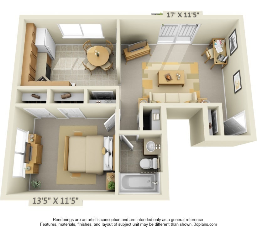 1 Dormitorio, 1 Baño, 609-713 pies²Galería del Modelo