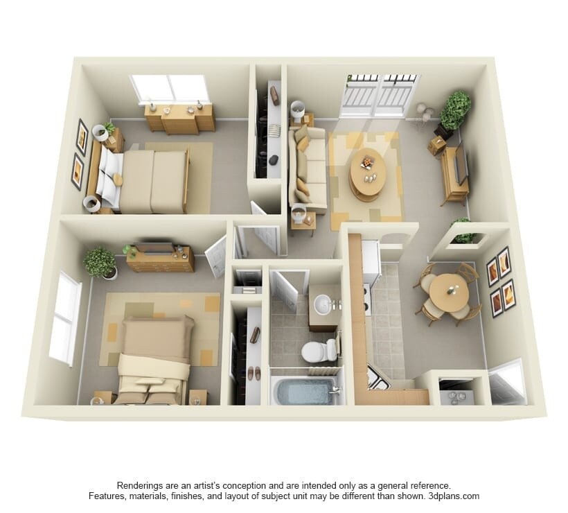 2 Dormitorios, 1 Baño, 778 pies²Galería del Modelo