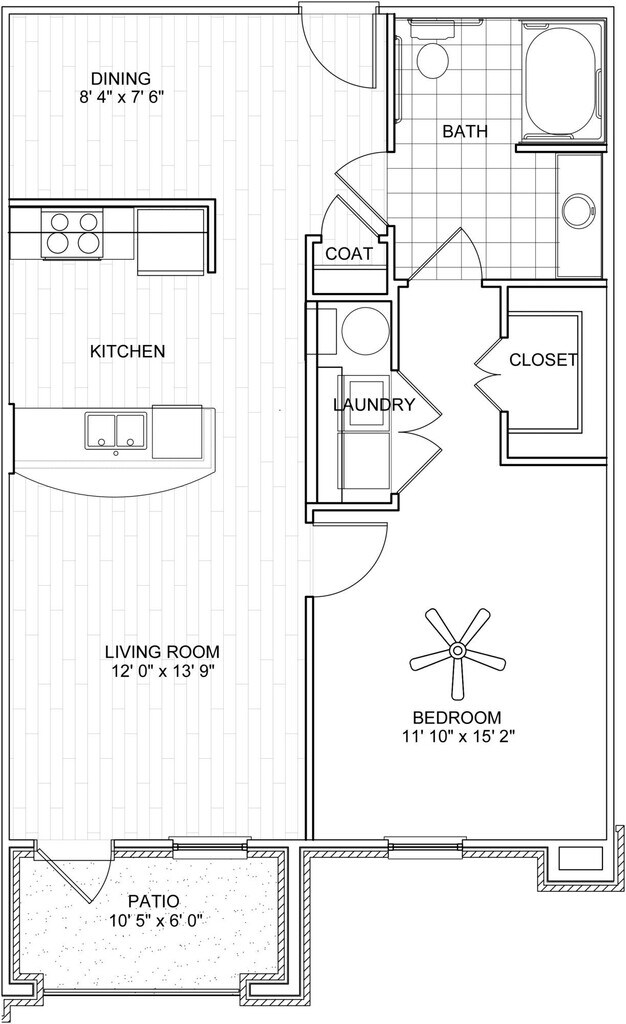 1 Dormitorio, 1 Baño, 665 pies²Disponible AhoraGalería del Modelo