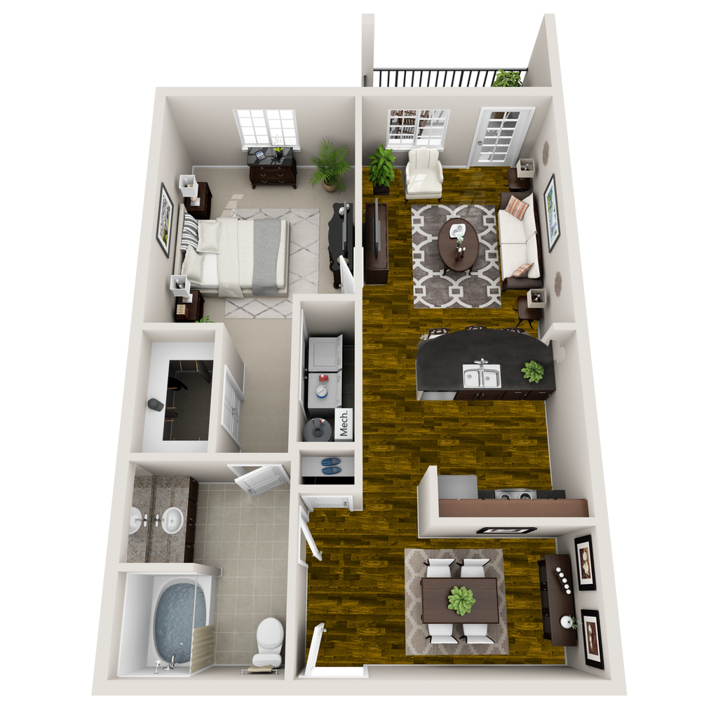 1 Dormitorio, 1 Baño, 750 pies²Disponible AhoraGalería del Modelo