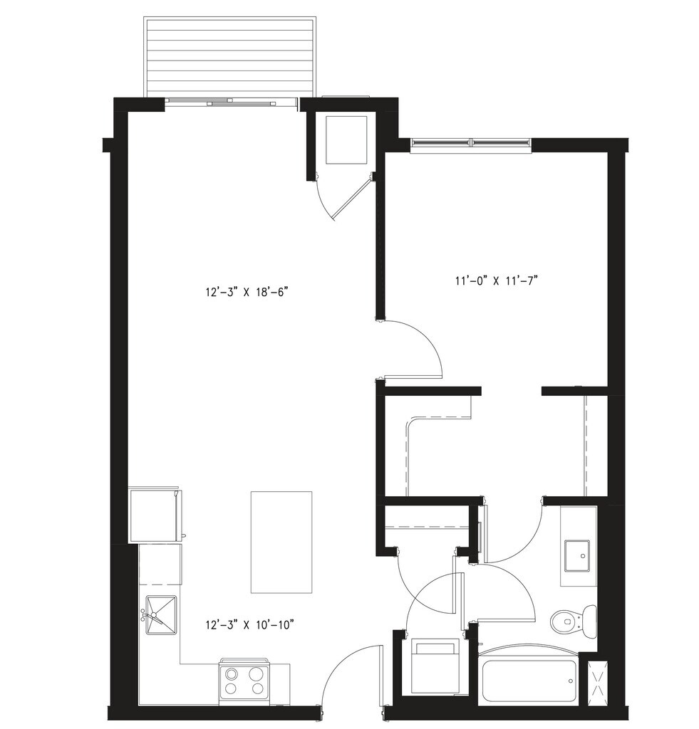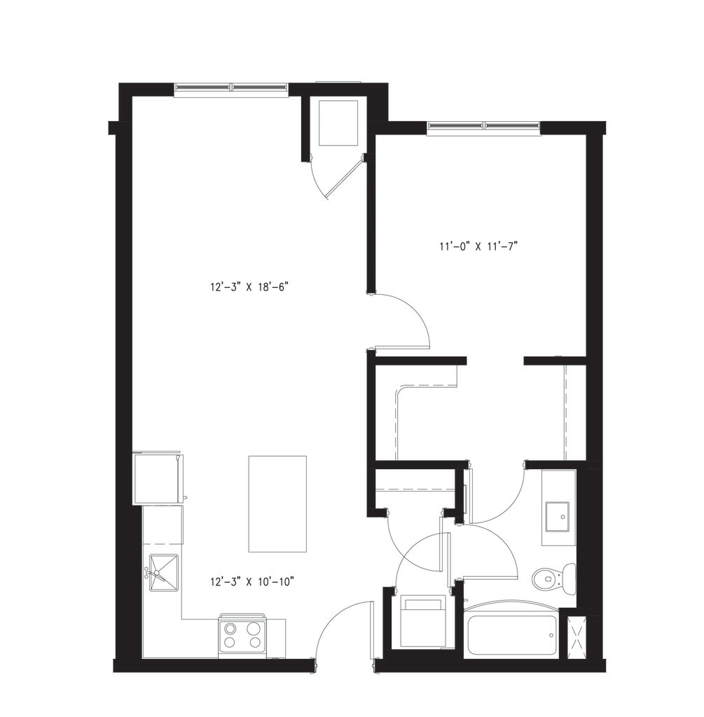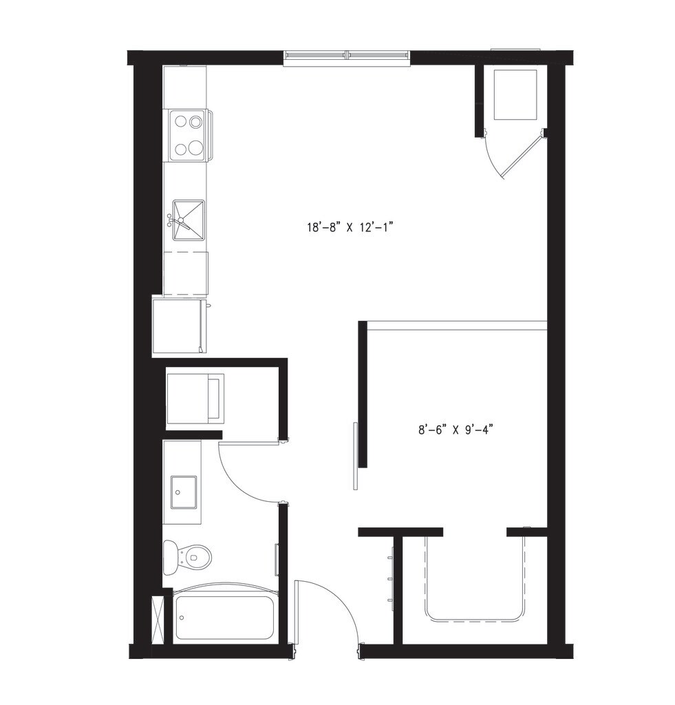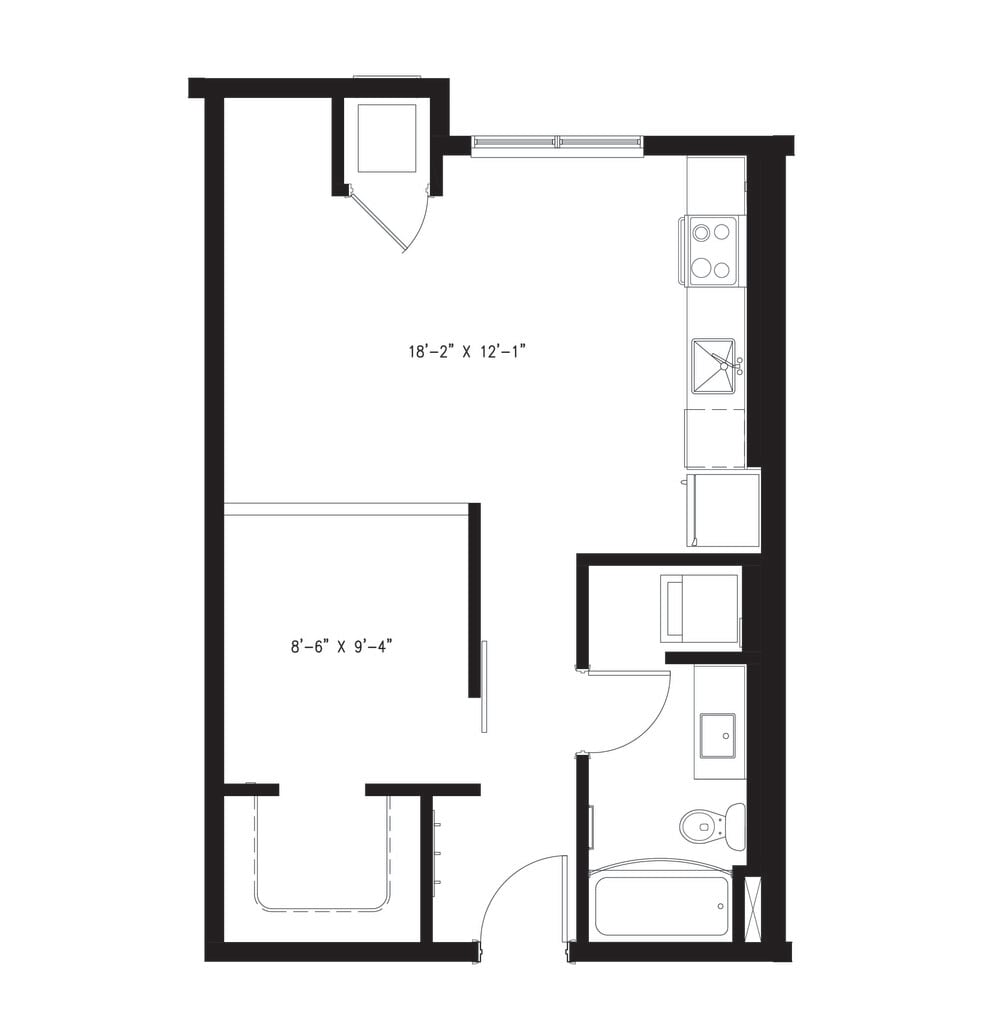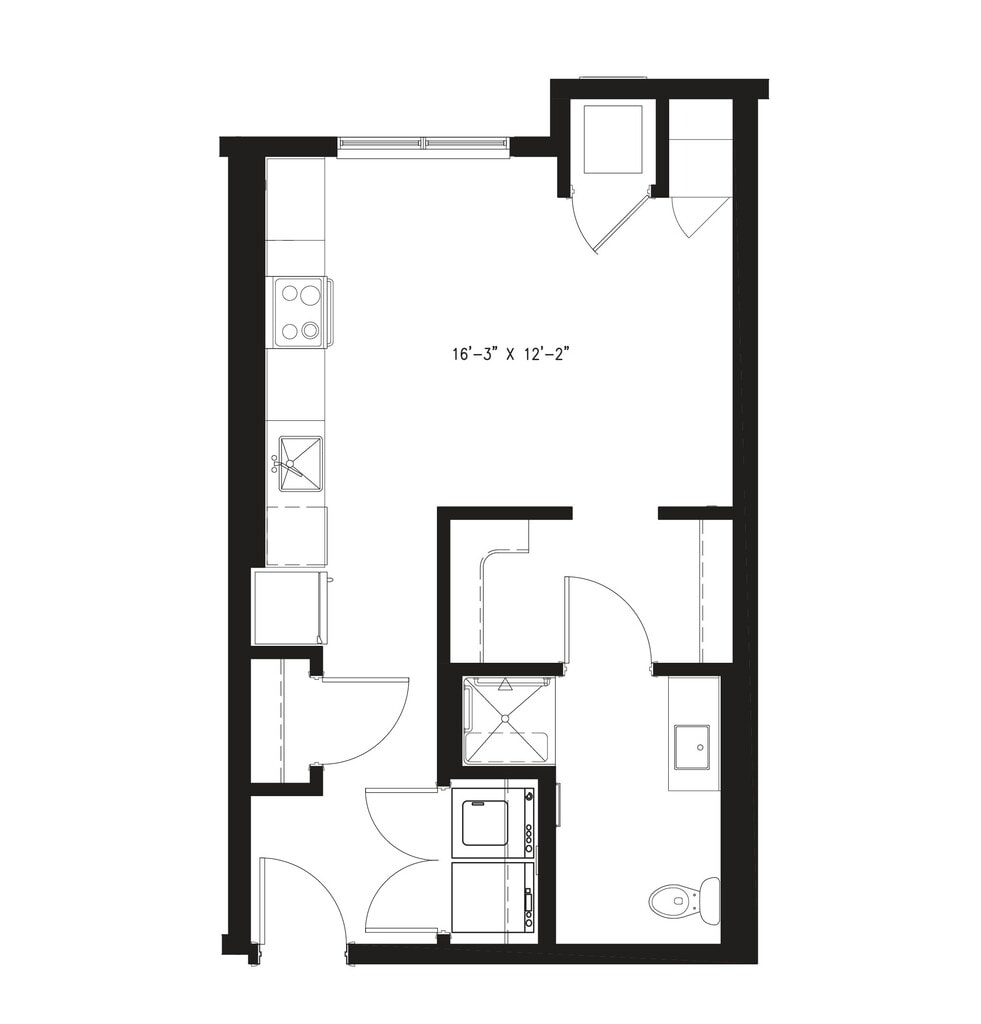 Estudio, 1 Baño, 515 pies²Galería del Modelo