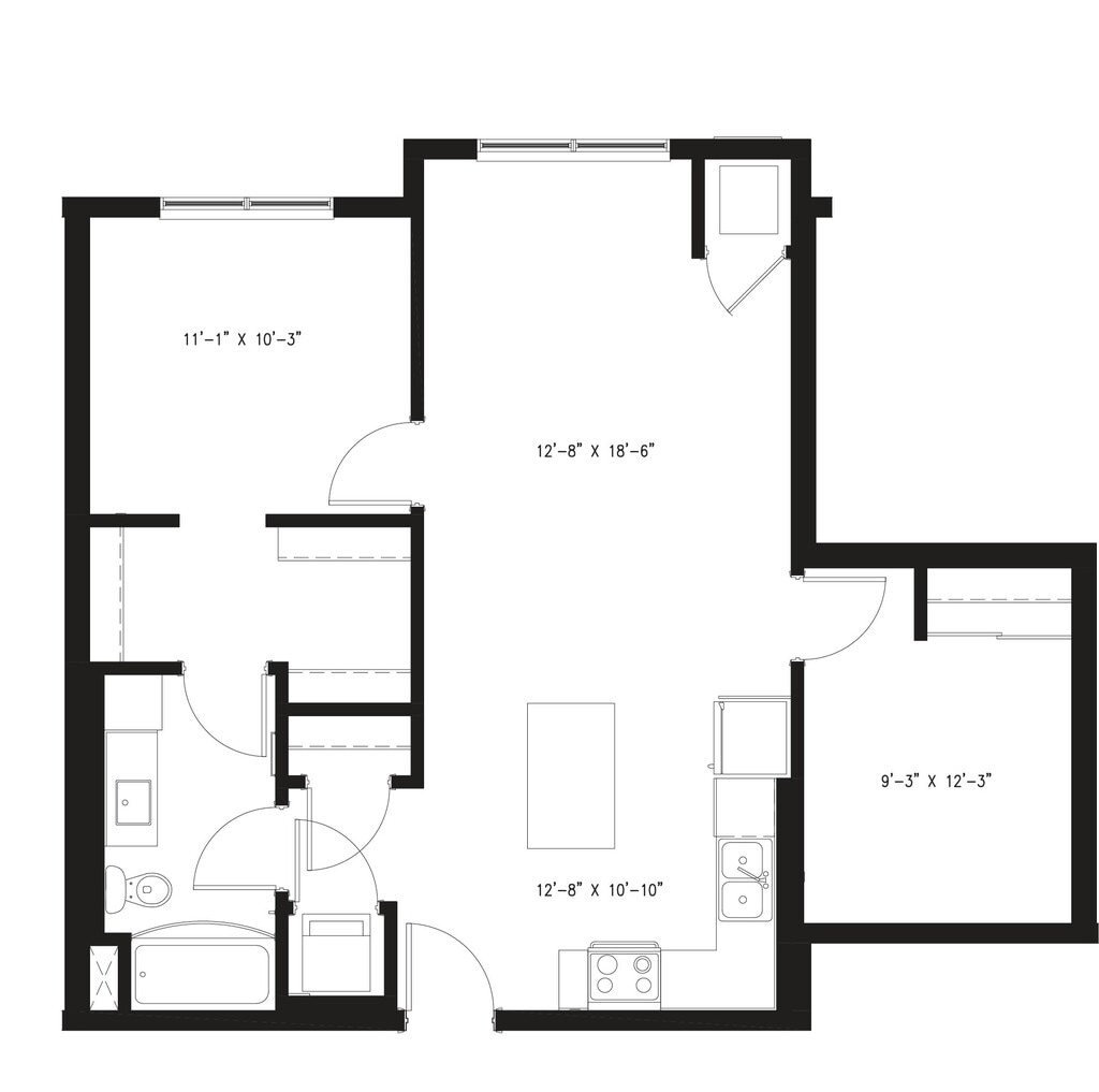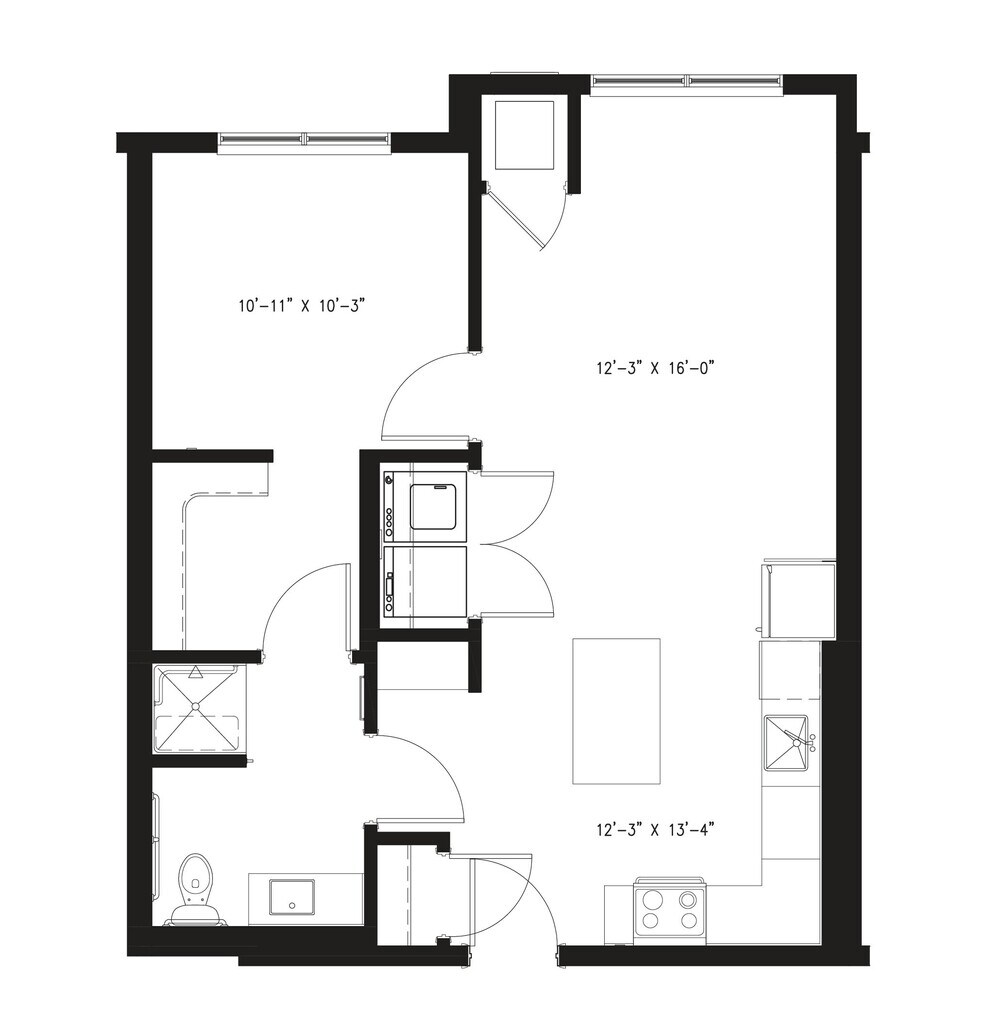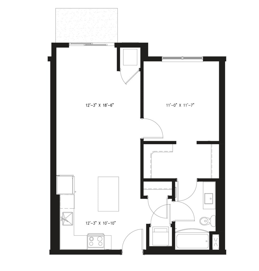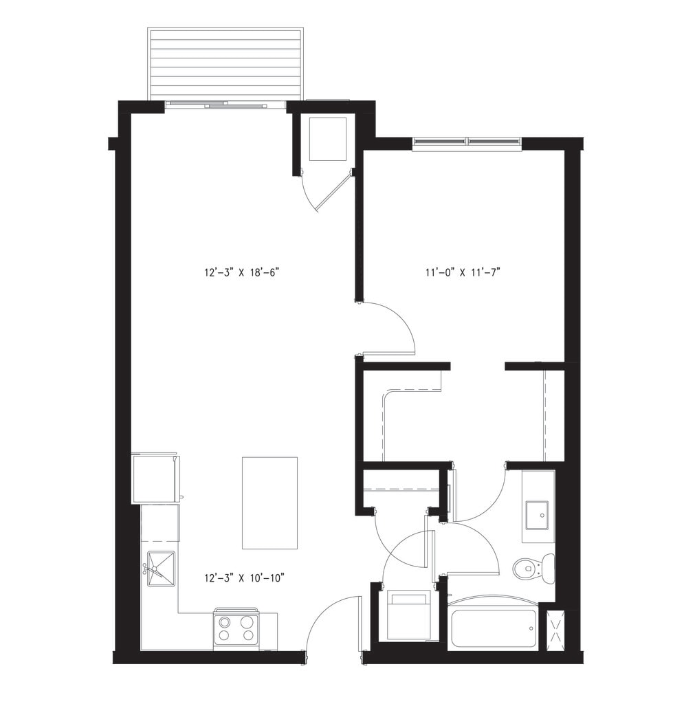 Estudio, 1 Baño, 515 pies²Galería del Modelo