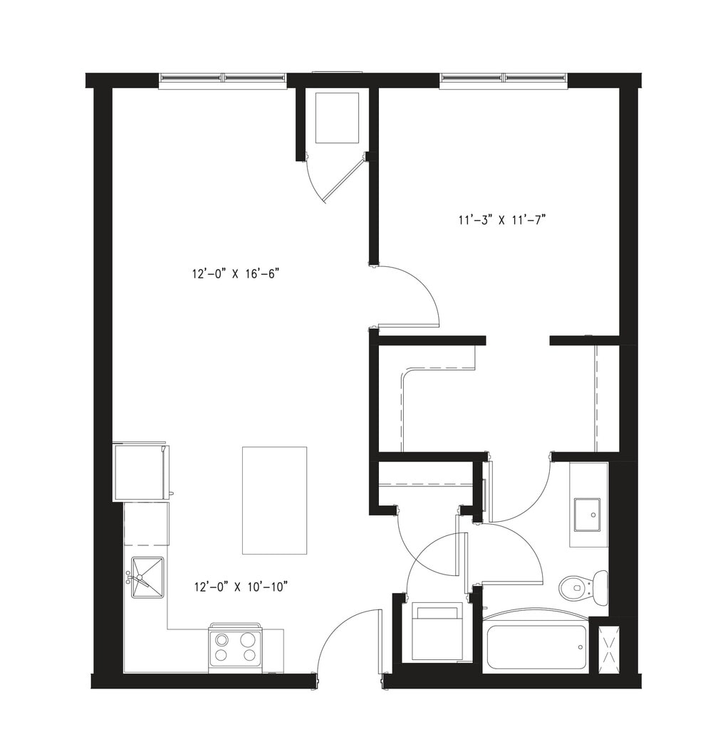 Estudio, 1 Baño, 516 pies²Galería del Modelo