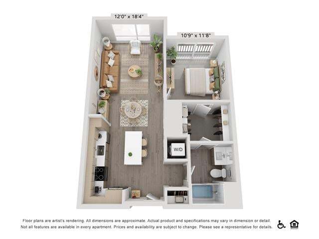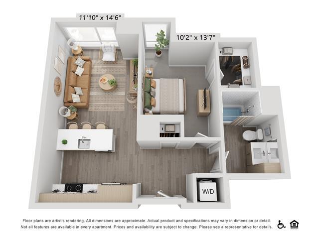 Estudio, 1 Baño, 697 pies²El más grandeEsta opción tiene las unidades más grandes para este modeloGalería del Modelo