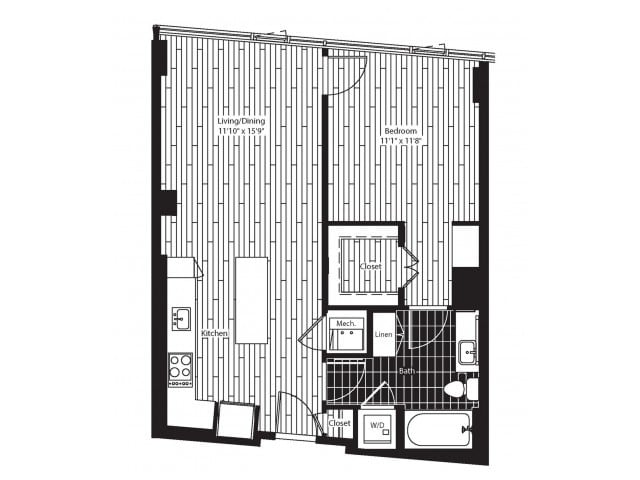 Estudio, 1 Baño, 385 pies²Disponible AhoraGalería del Modelo