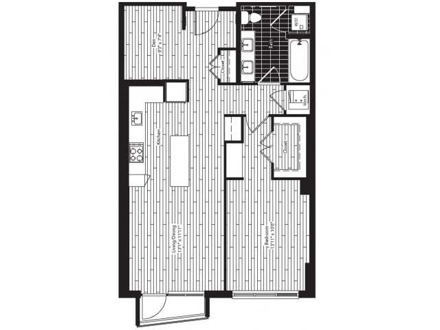 Modelo de apartamento: A19D1 Dormitorio, 1 Baño, 824 sq ftDisponible Ahora![]()