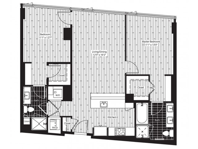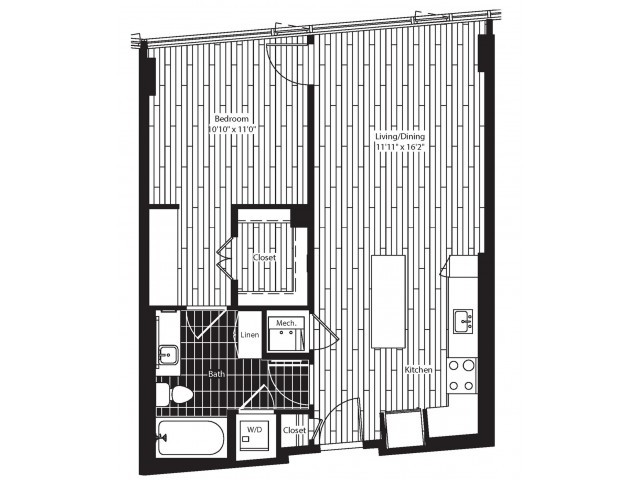 A19D - Plano 1 Unidad de apartamento: 0635Modelo de apartamento: A19D1 Dormitorio, 1 Baño, 824 sq ftDisponible AhoraPlano: A06