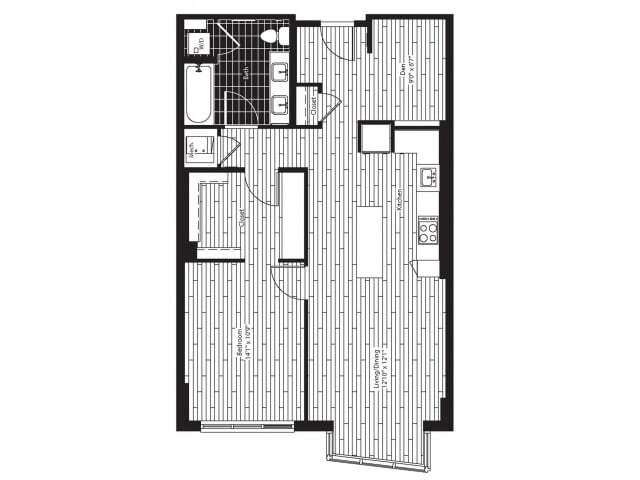 Modelo de apartamento: A141 Dormitorio, 1 Baño, 712 sq ftDisponible AhoraLos planos son representaciones artísticas. Todas las dimensiones son aproximadas. El producto y las especificaciones reales pueden variar en tamaño o detalle. No todas las características están disponibles en cada vivienda en alquiler. Por favor, consulta con un representante para obtener más detalles