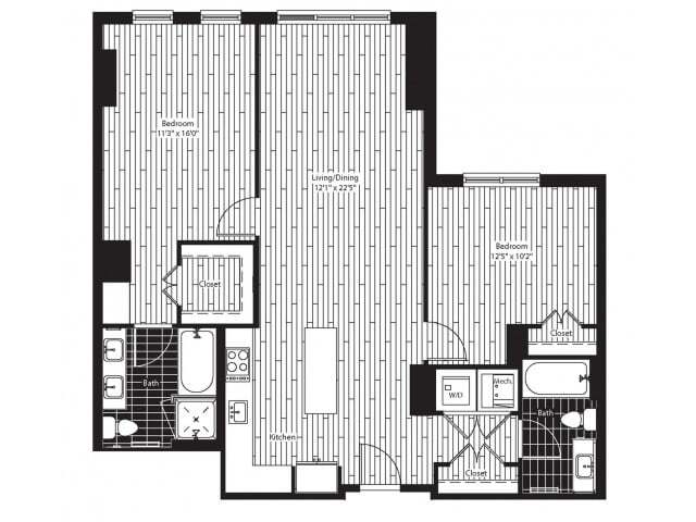 1 Dormitorio, 1 Baño, 653 pies²Disponible AhoraGalería del Modelo
