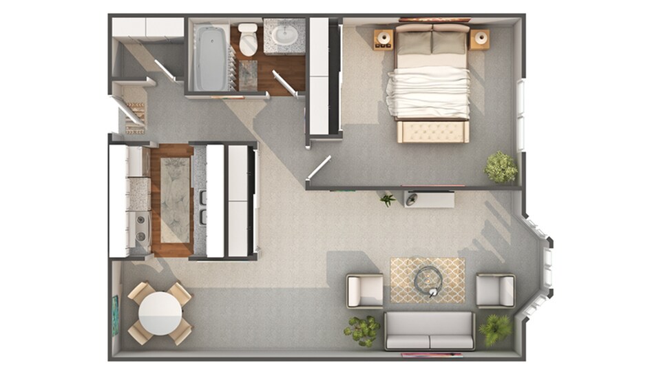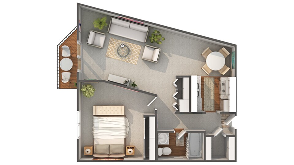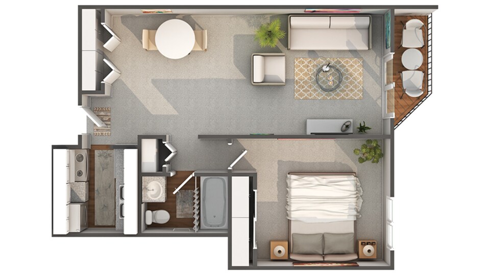Modelo de apartamento: The SpruceDesde $1,4951 Dormitorio, 1 Baño, 734 sq ftDisponible December 12, 2025![]()