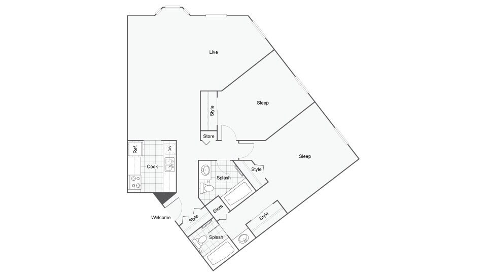 The Spruce - Plano 2 Unidad de apartamento: 4301-120Modelo de apartamento: The SpruceDesde $1,4951 Dormitorio, 1 Baño, 734 sq ftDisponible December 12, 2025The Juniper