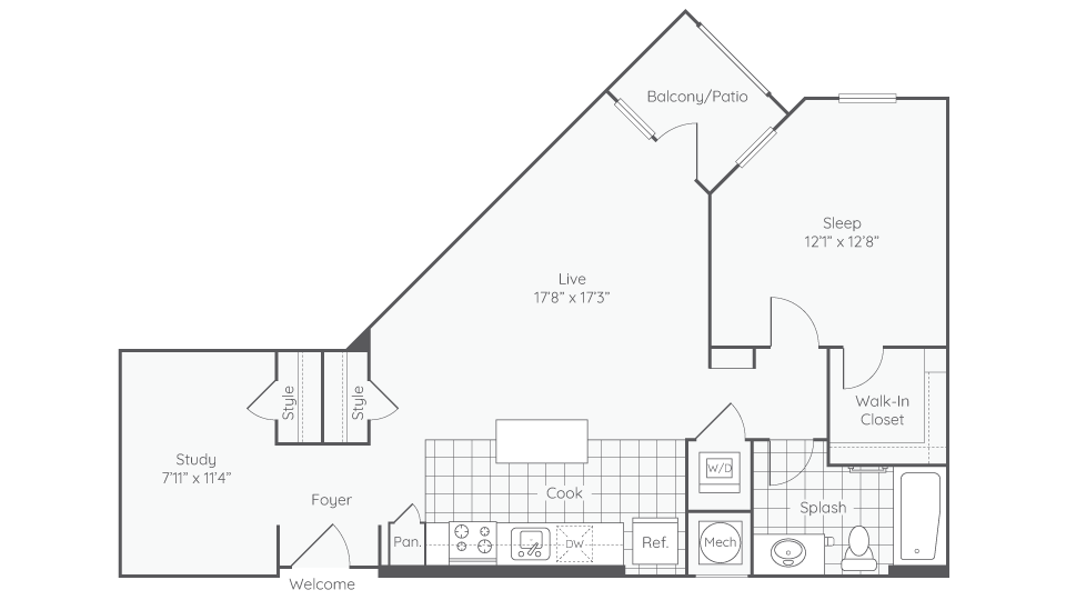 Modelo de apartamento: AlexandriaDesde $1,7951 Dormitorio, 1 Baño, 539 sq ftDisponible Ahora![]()