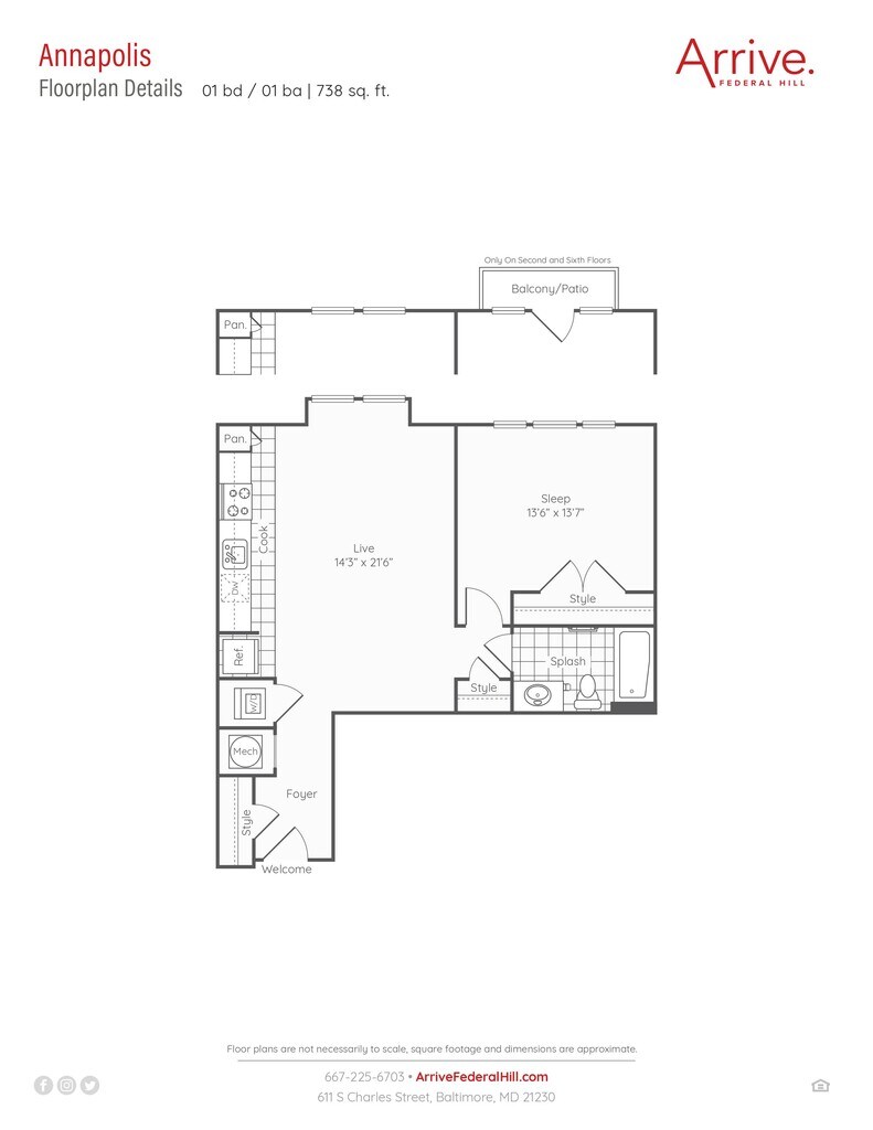 Annapolis - Plano 2 Unidad de apartamento: 343Modelo de apartamento: Annapolis$2,0201 Dormitorio, 1 Baño, 738 sq ftDisponible AhoraAnniston