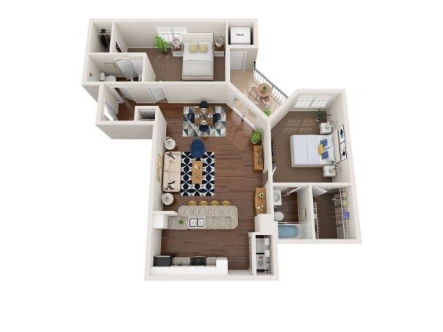 Modelo de apartamento: ColumbiaDesde $3,5992 Dormitorios, 2 Baños, 1377 sq ftDisponible April 30, 2026![]()