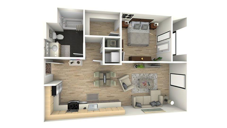 Estudio, 1 Baño, 894 pies²Disponible AhoraEl más grandeEsta opción tiene las unidades más grandes para este modeloGalería del Modelo