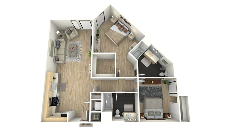 Modelo de apartamento: S3Desde $2,115Estudio, 1 Baño, 624 sq ftDisponible December 1, 2025![]()