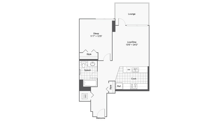 Modelo de apartamento: ArcherDesde $2,7491 Dormitorio, 1 Baño, 598 sq ftDisponible Ahora![]()