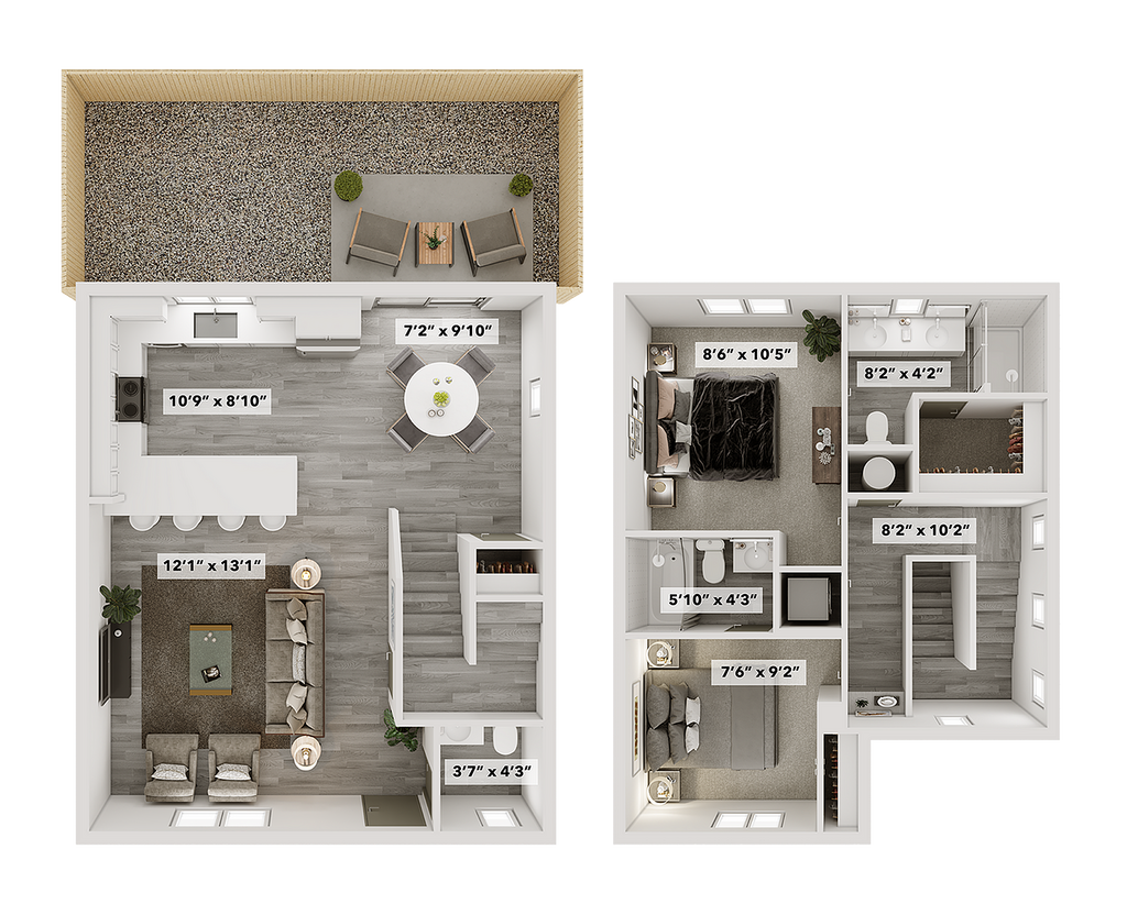 Modelo de apartamento: 2 Bed Townhome BDesde $2,5292 Dormitorios, 2.5 Baños, 1145 sq ftDisponible AhoraPlanos3D Tours![]()