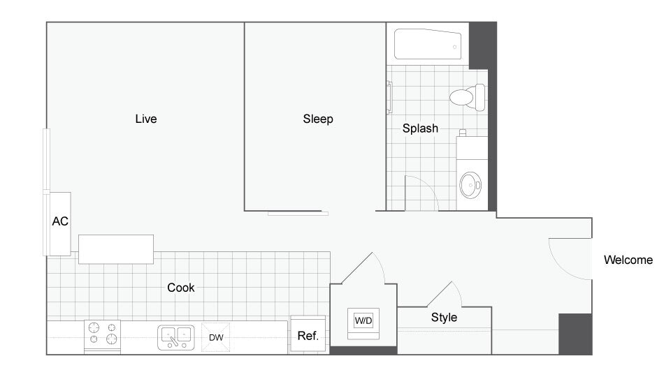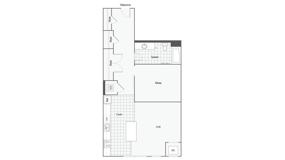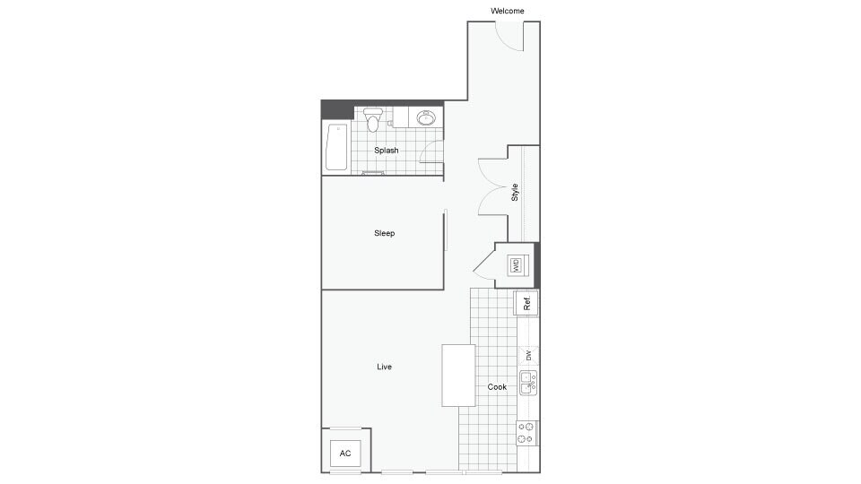 Walker - Plano 2 Unidad de apartamento: 1-213Modelo de apartamento: Walker$1,239Estudio, 1 Baño, 511 sq ftDisponible November 26, 20251 Dormitorio